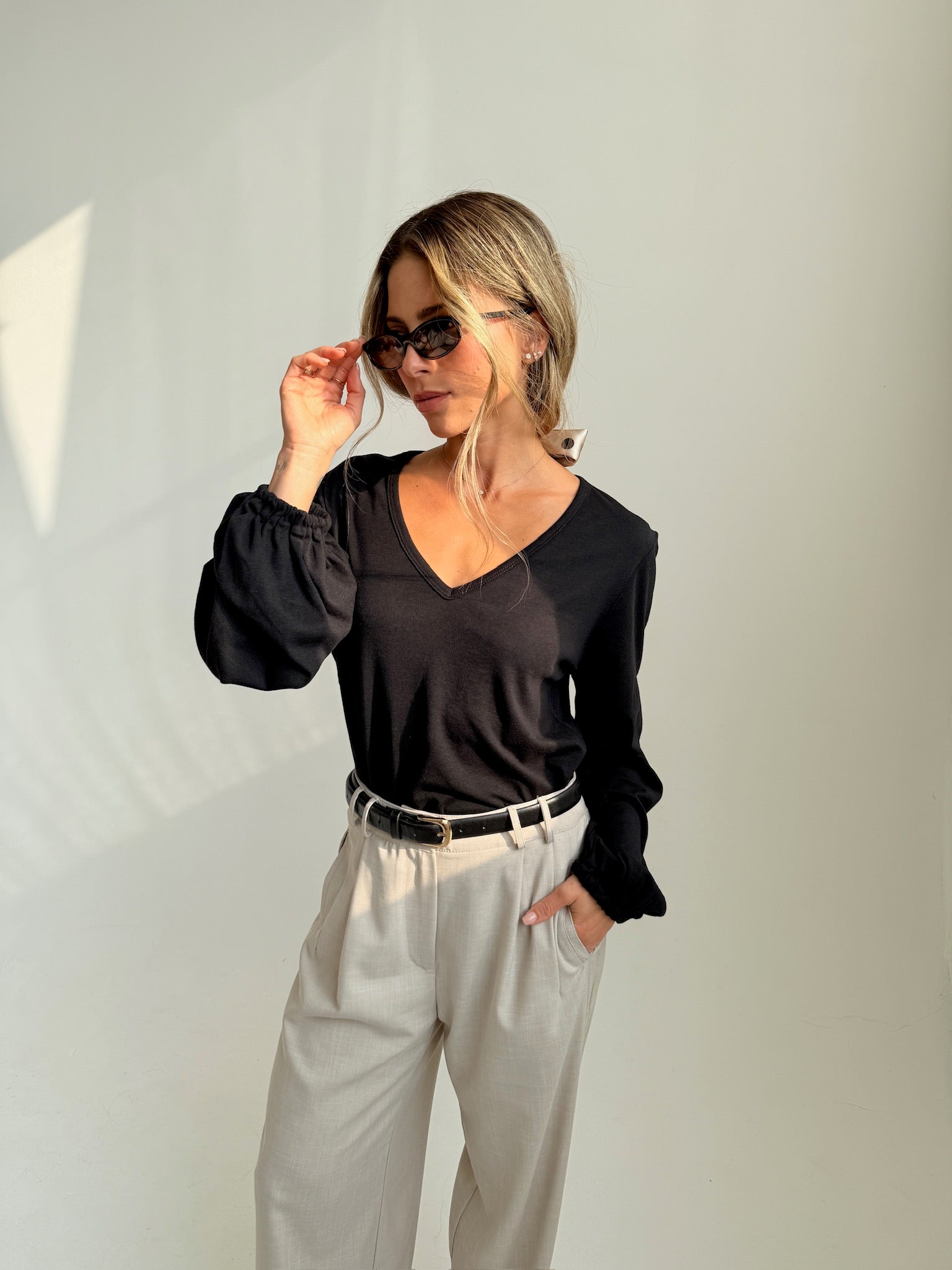 חולצה מבד אריג דק, איכותי ונעים על הגוף בשילוב שרוול בלון עם גומי. מושלמת לערבים הקרירים שבדרך.
