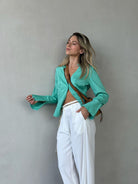 מכופתרת מבד פרקל בשילוב מפתח וי מחמיא.