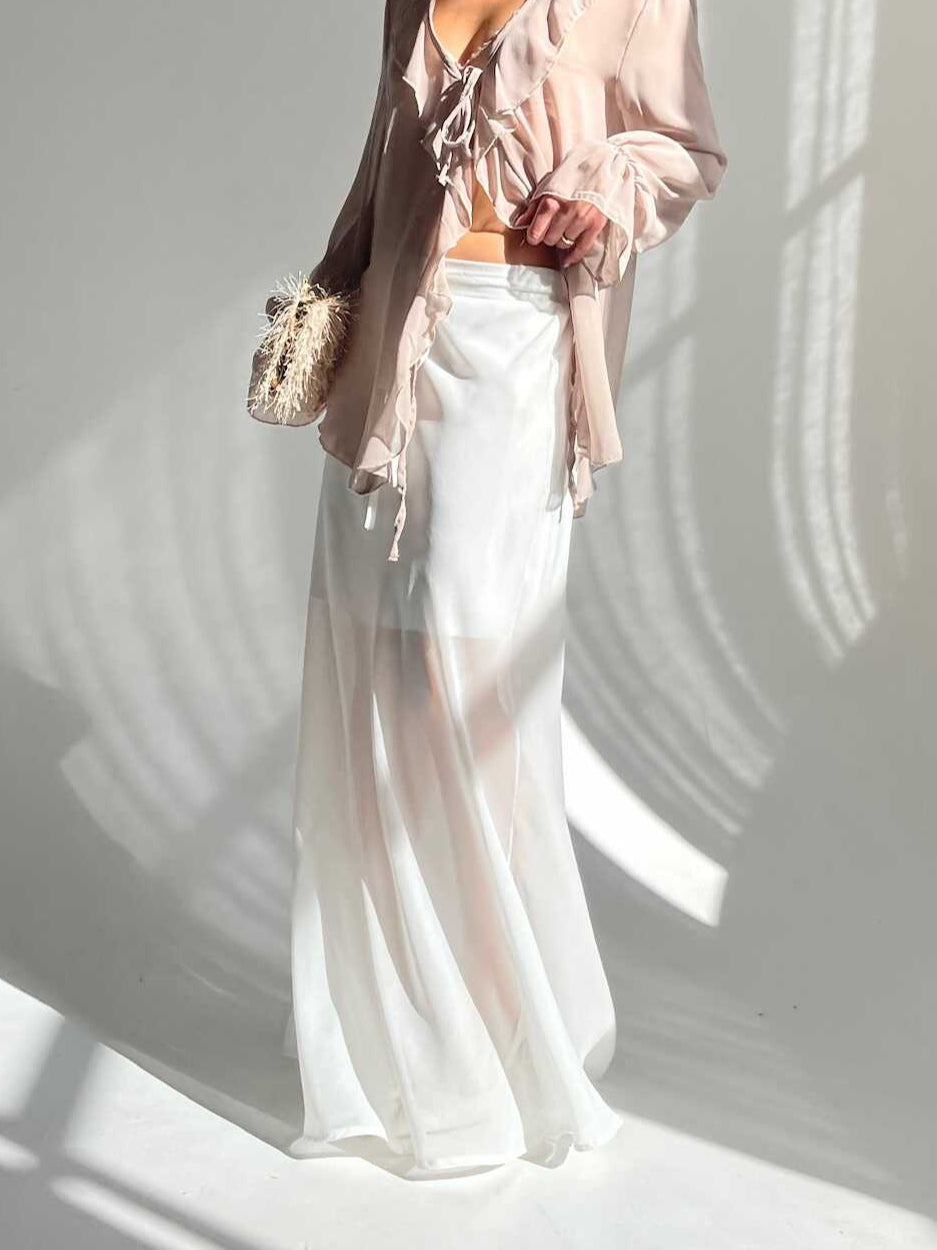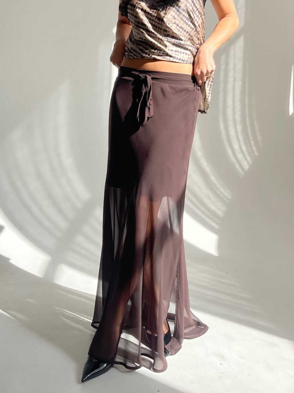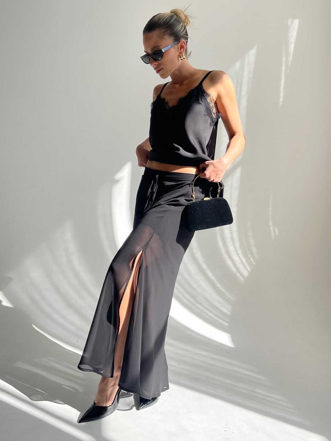 חצאית שיפון ארוכה בשילוב שסע וגומי מאחורה, חצאית שתעיף כל לוק