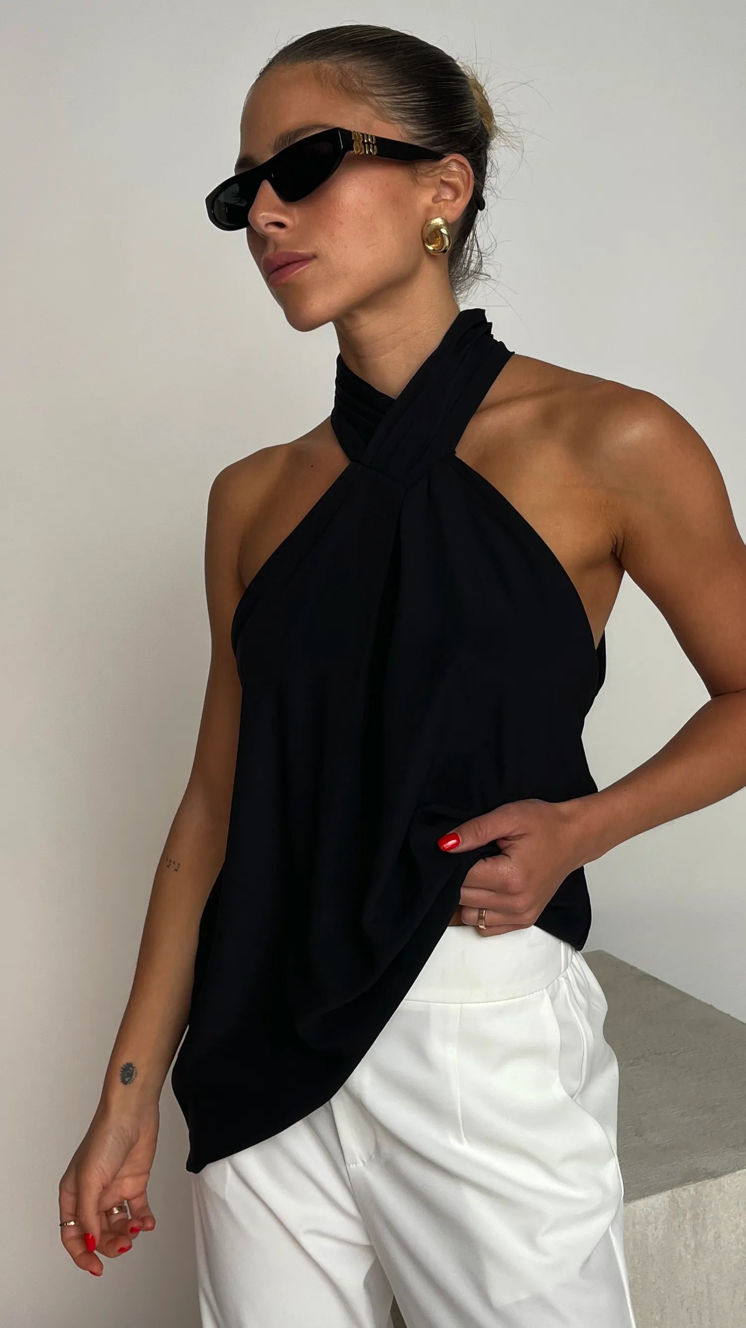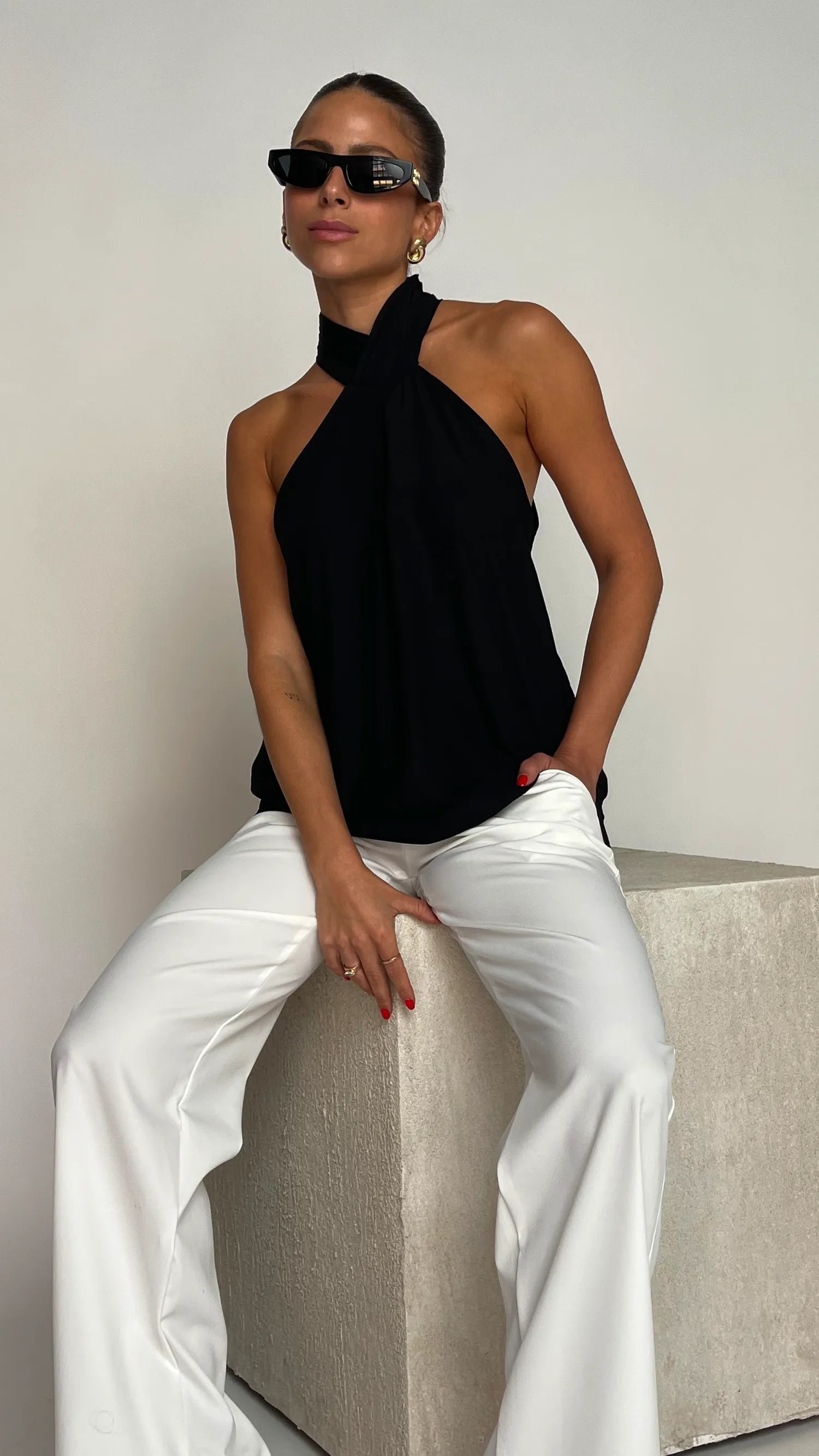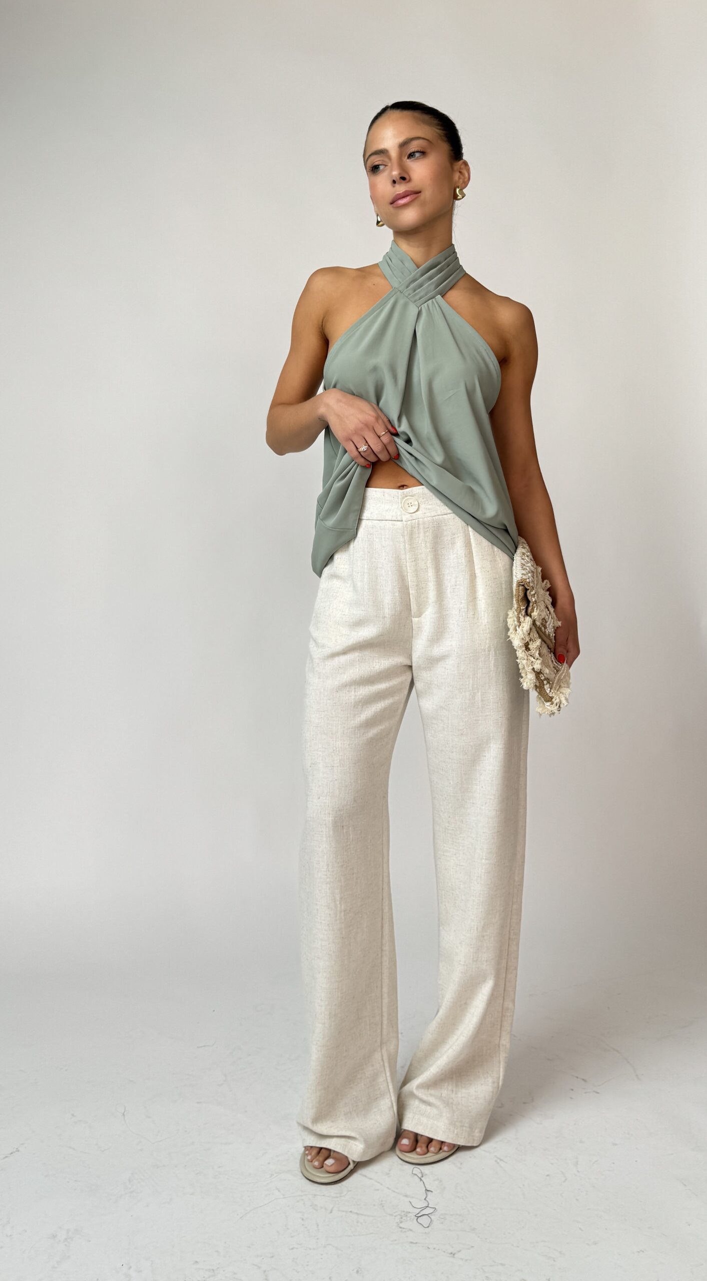 חולצת קולר מבד סאטן באורך המושלם, המלצת המערכת לשלב עם מכנס בלה מהקולקציה החדשה לטואטל לוק מושלם.