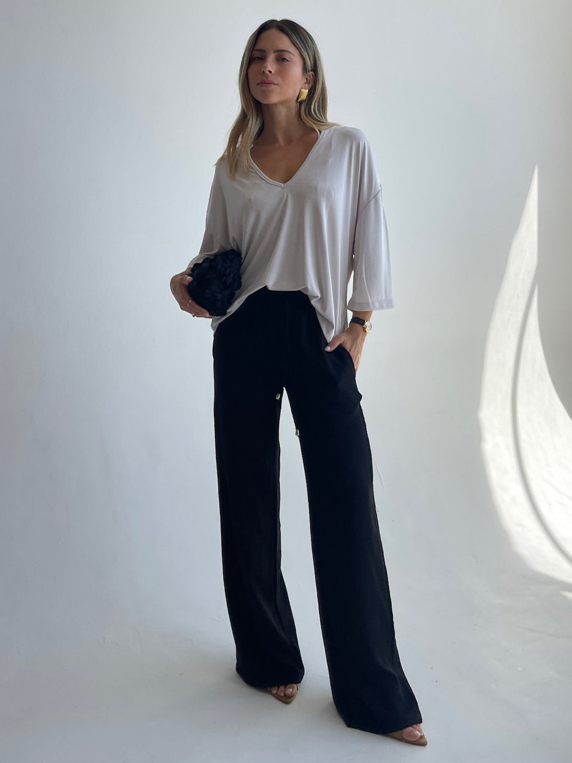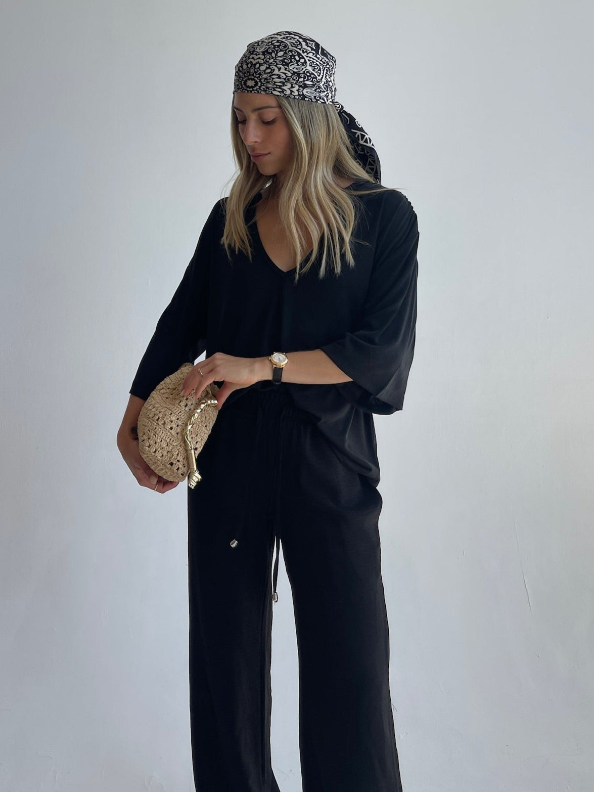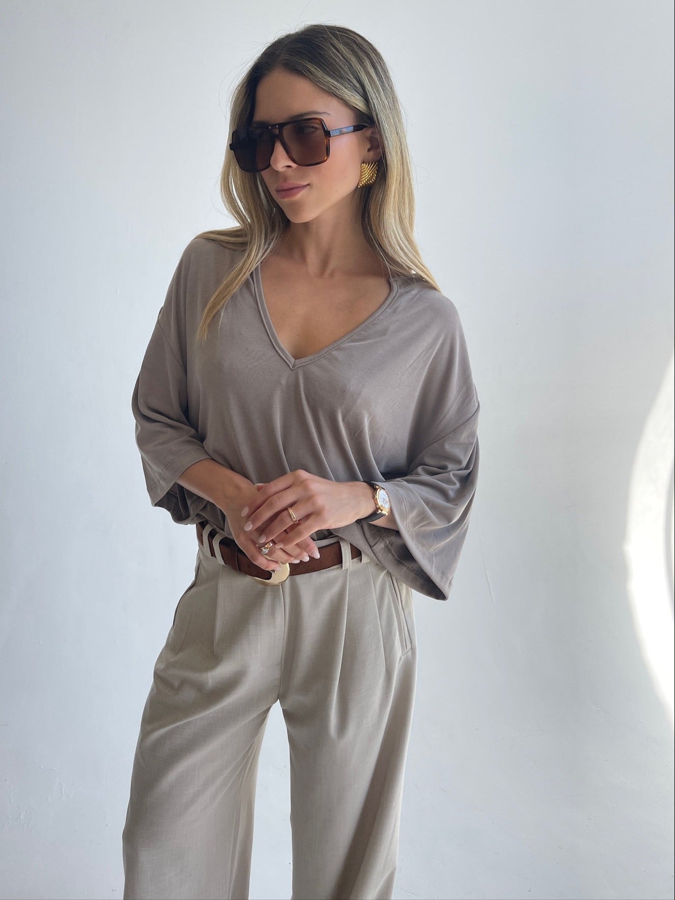חולצה נשית עם כיווץ עדין בכתפיים שמוסיף טאץ’ מחמיא ושיק עדכני. גזרה נוחה וקלילה שמתאימה ליום יום.
